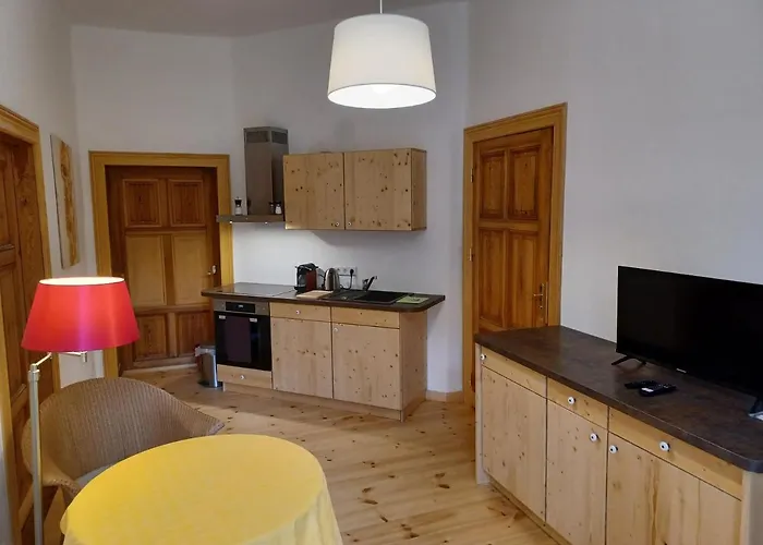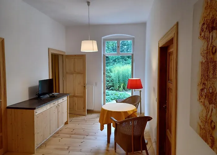 Fewo "Biene" Im Kunstgut Krahne 莱宁设有厨房和配卫星频道平板电视,咖啡/茶设施和休息区的客房. 寓所距离Reckahn School仅2.6公里,而距离Rochow-Museum只有2.7公里.